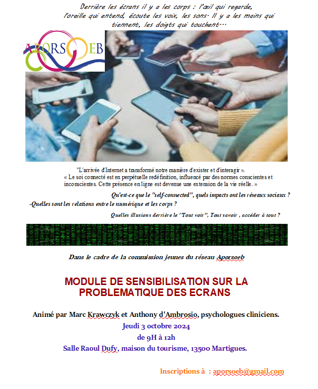 Pour vous inscrire, merci de nous écrire à aporsoeb@gmail.com